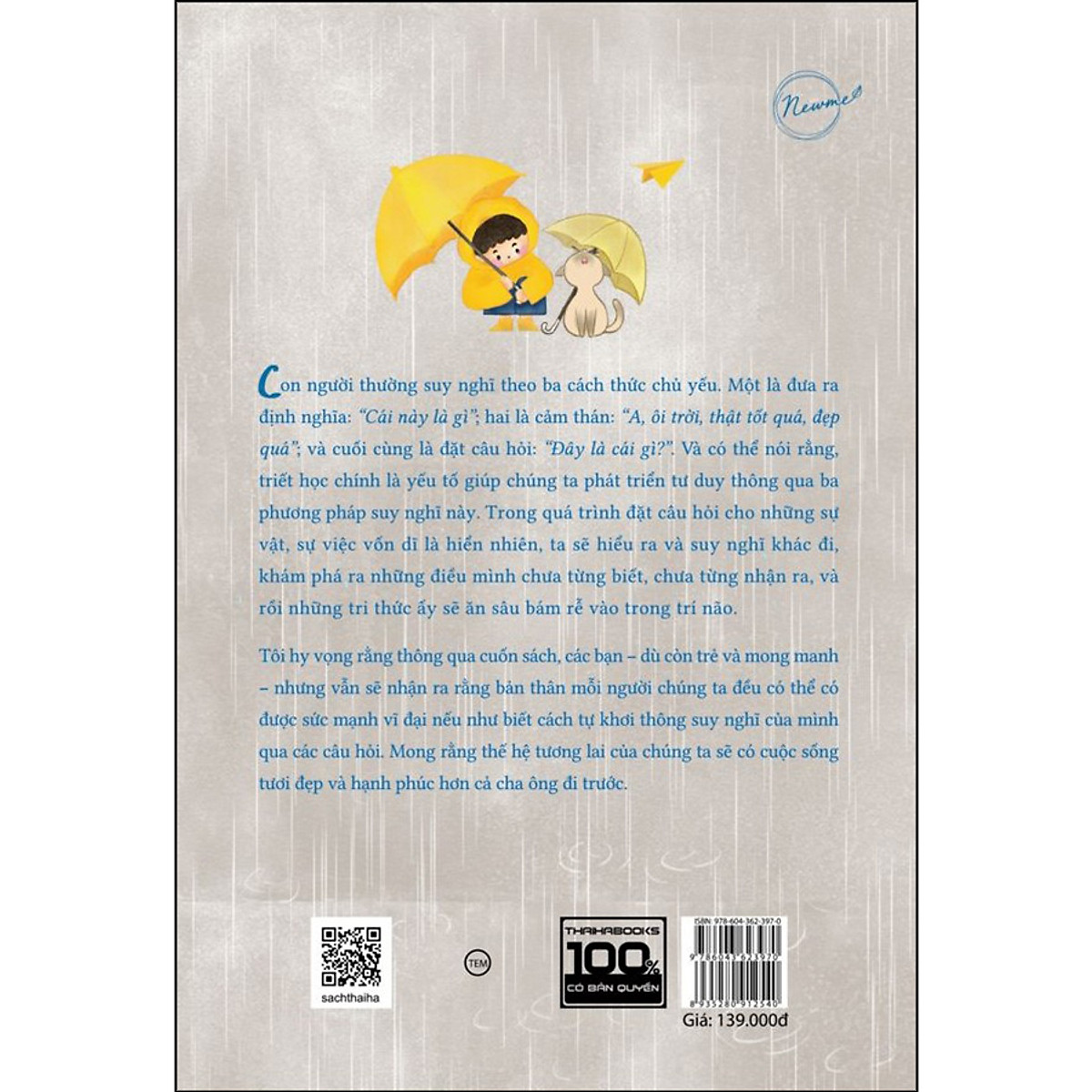 Cuốn sách này được viết với mục đích ấy. Tôi hi vọng rằng thông qua cuốn sách, các bạn – dù còn trẻ và mong manh – nhưng vẫn sẽ nhận ra rằng bản thân mỗi người chúng ta đều có thể có được sức mạnh to lớn vĩ đại nếu như biết cách tự khơi thông suy nghĩ của mình qua các câu hỏi. Mong rằng thế hệ tương lai của chúng ta sẽ có cuộc sống tươi đẹp và hạnh phúc hơn cả cha ông đi trước.