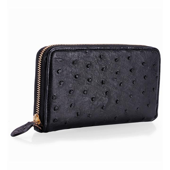 Bóp/Ví da đà điểu Huy Hoàng da bụng màu đen, nâu đất, nâu đỏ, vàng bò 2405-06-07-19