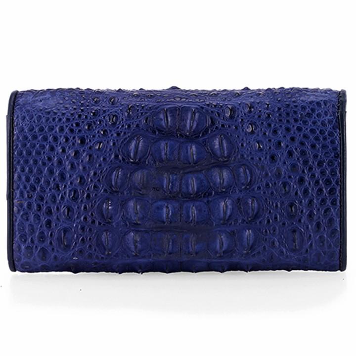 ✨HC3720 - Ví nữ Huy Hoàng da cá sấu 3 gấp nguyên con màu xanh đậm