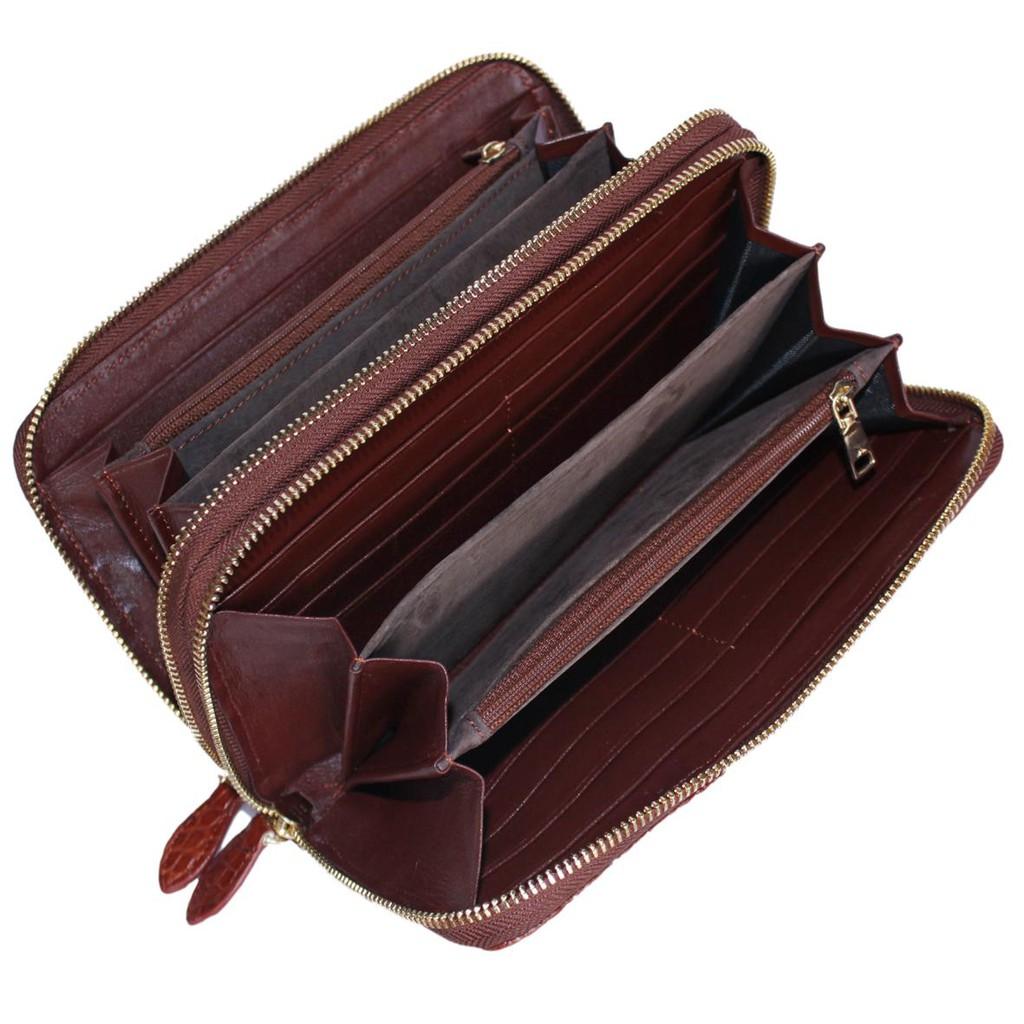 - Tên sản phẩm: HP3739 - Ví nữ da cá sấu Huy Hoàng nhiều ngăn gai cầm tay màu nâu đỏ