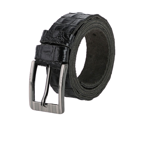 Dây nịt/Thắt lưng nam da bò Huy Hoàng vân cá sấu 1 lớp màu đen 4123