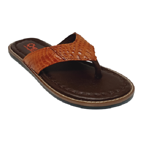 Dép nam Huy hoàng da bò xỏ ngón đan viền màu nâu 7727