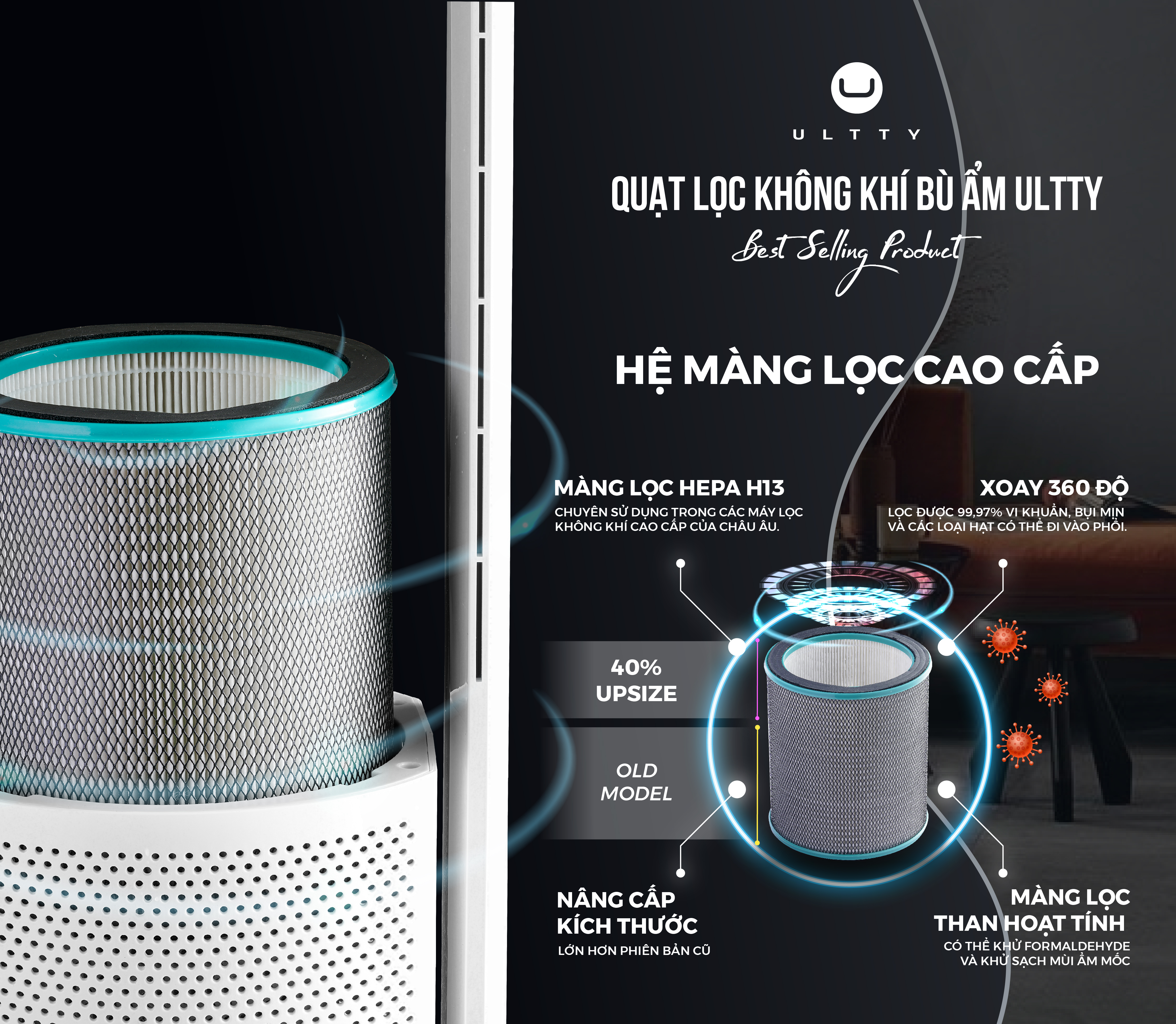 ✨Hệ Màng lọc Hepa H14 cho quạt Ultty SKJ CR022, Hàng chính hãng