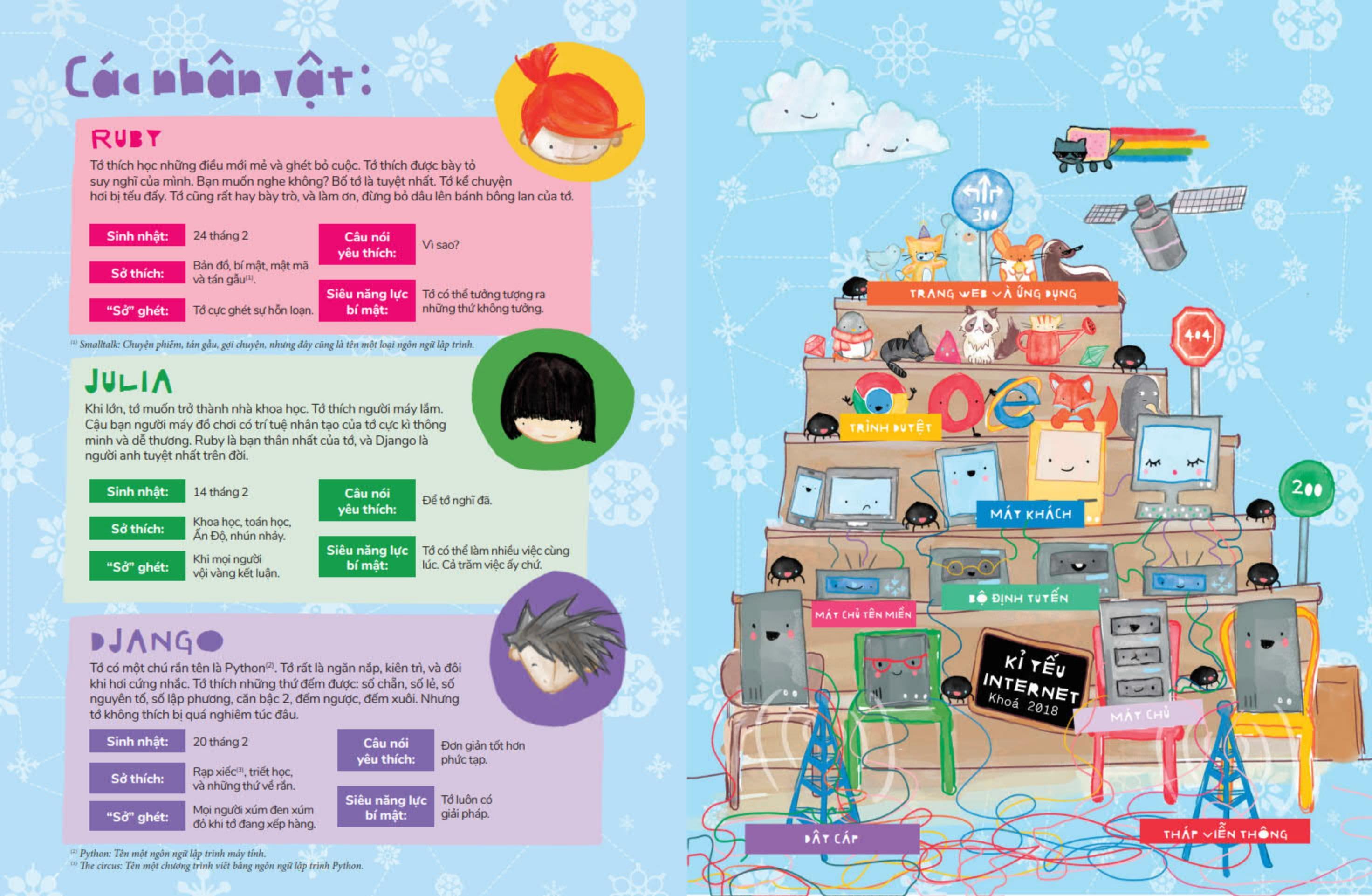 Trong thế giới của Hello Ruby, mọi ý tưởng đều có thể trở thành hiện thực – ngay cả việc xây dựng mạng Internet từ tuyết! Hãy cùng cô bé Ruby và những người bạn tham gia hành trình chế tạo Internet Tuyết và học thêm nhiều điều thú vị về Internet – thứ tưởng chừng như đã quá đỗi quen thuộc nhé! Bên cạnh chuyến thám hiểm thú vị, cuốn sách Hello Ruby - Thám Hiểm Internet còn mang đến nhiều hoạt động thực hành gợi mở sức sáng tạo và tư duy khoa học. Hãy cùng khám phá ngay thôi nào!