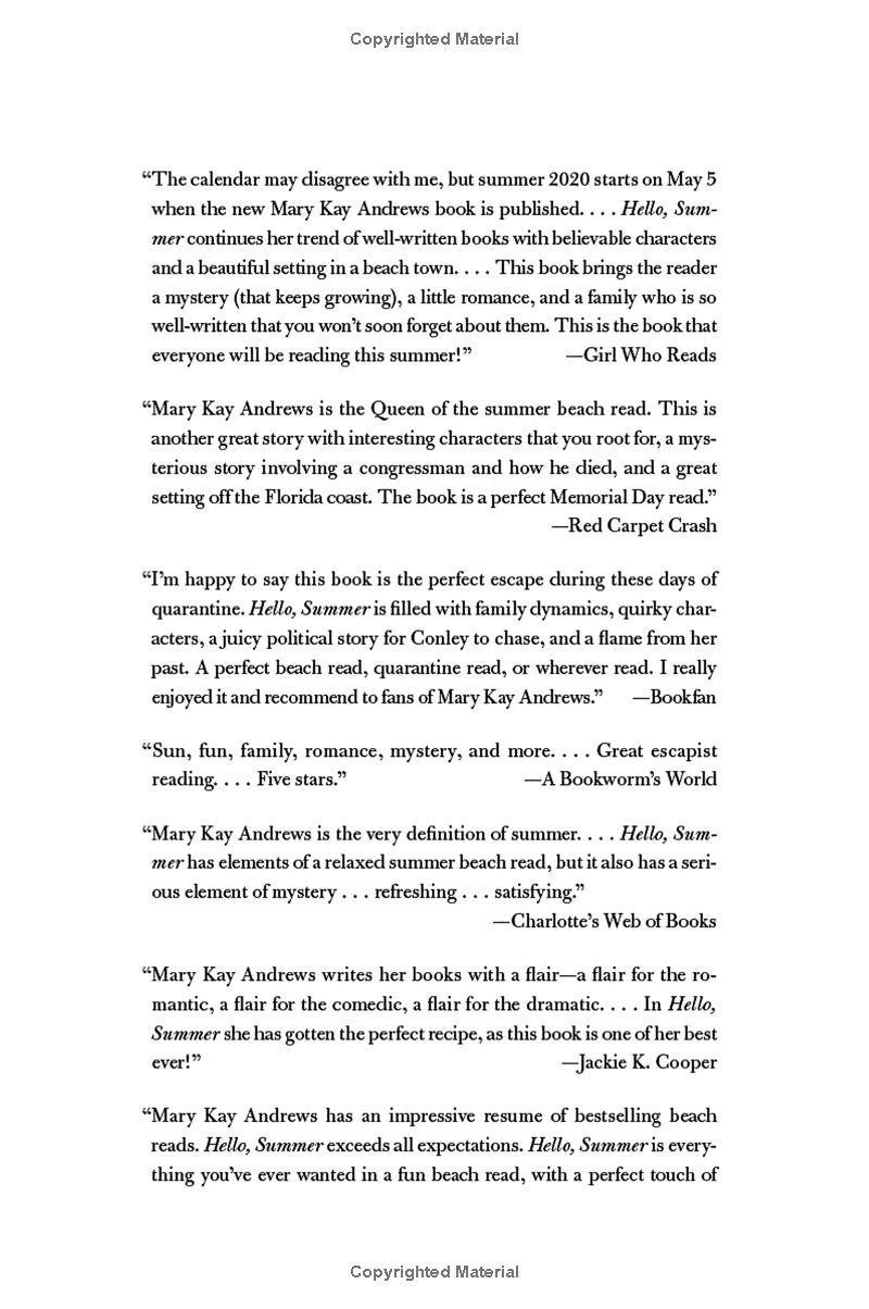 Hello, Summer New York Times bestselling author and Queen of the Beach Reads Mary Kay Andrews delivers her next blockbuster, Hello Summer. It’s a new Conley Hawkins left her family’s ...