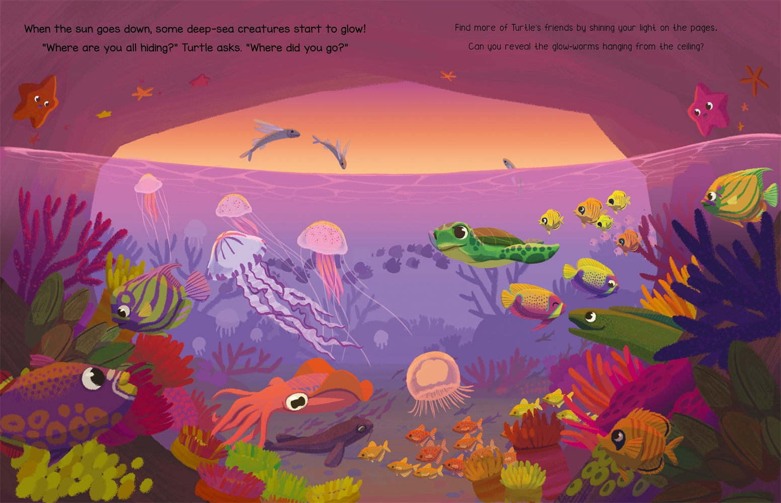 Help Turtle find her friends in this incredible magical light book! Shine the detachable torch across the pages to uncover the ocean's colourful secret characters and join Turtle on a magical, interactive adventure!