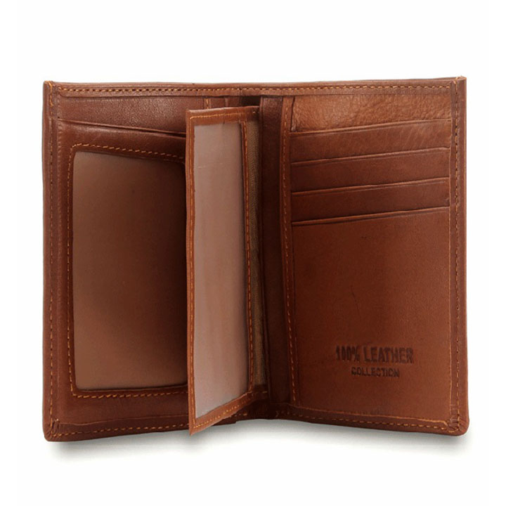 Ví/Bóp nam Huy Hoàng da bò kiểu đứng sọc ngang màu nâu 2140
