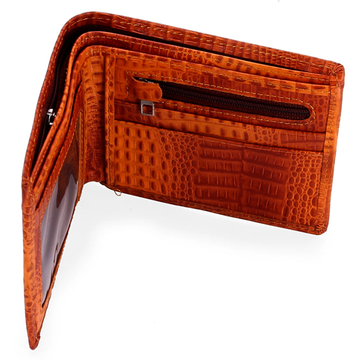 - Ví nam được làm bằng chất liệu da cá sấu cao cấp tạo kiểu dáng lạ mắt, sang trọng. - Thiết kế nhỏ gọn, thời trang, dạng ví nam xếp đôi, có nhiều ngăn