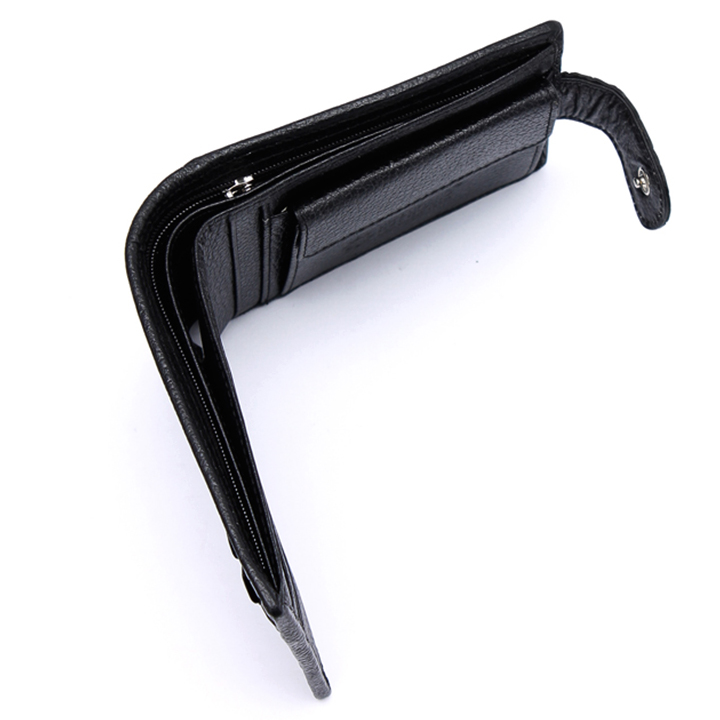 Ví/Bóp nam Huy Hoàng da bò bấm nút màu đen 2142