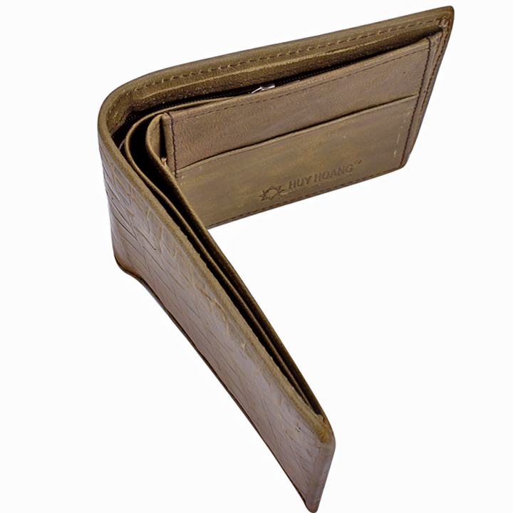 - Bóp nam Huy Hoàng được làm bằng chất liệu da cá sấu cao cấp tạo kiểu dáng lạ mắt, sang trọng.