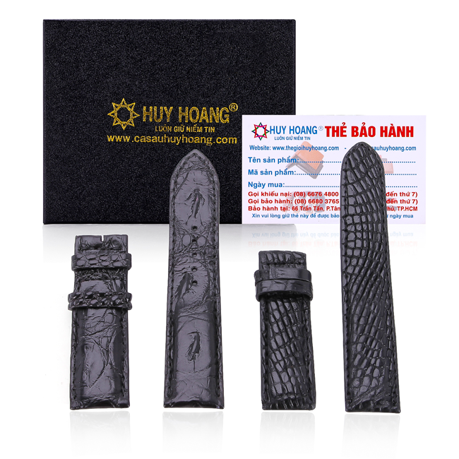 Dây đồng hồ Huy Hoàng da cá sấu 2 mặt da size 22, 24, 26 màu nâu đỏ 8284