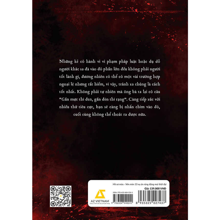 “Hồ sơ máu - Vén màn 13 vụ án rúng động mọi thời đại” - Cuốn sách này chứa nhiều tình tiết và hình ảnh hiện trường rùng rợn, dễ gây ám ảnh, độc giả cần lưu ý trước khi đọc.
