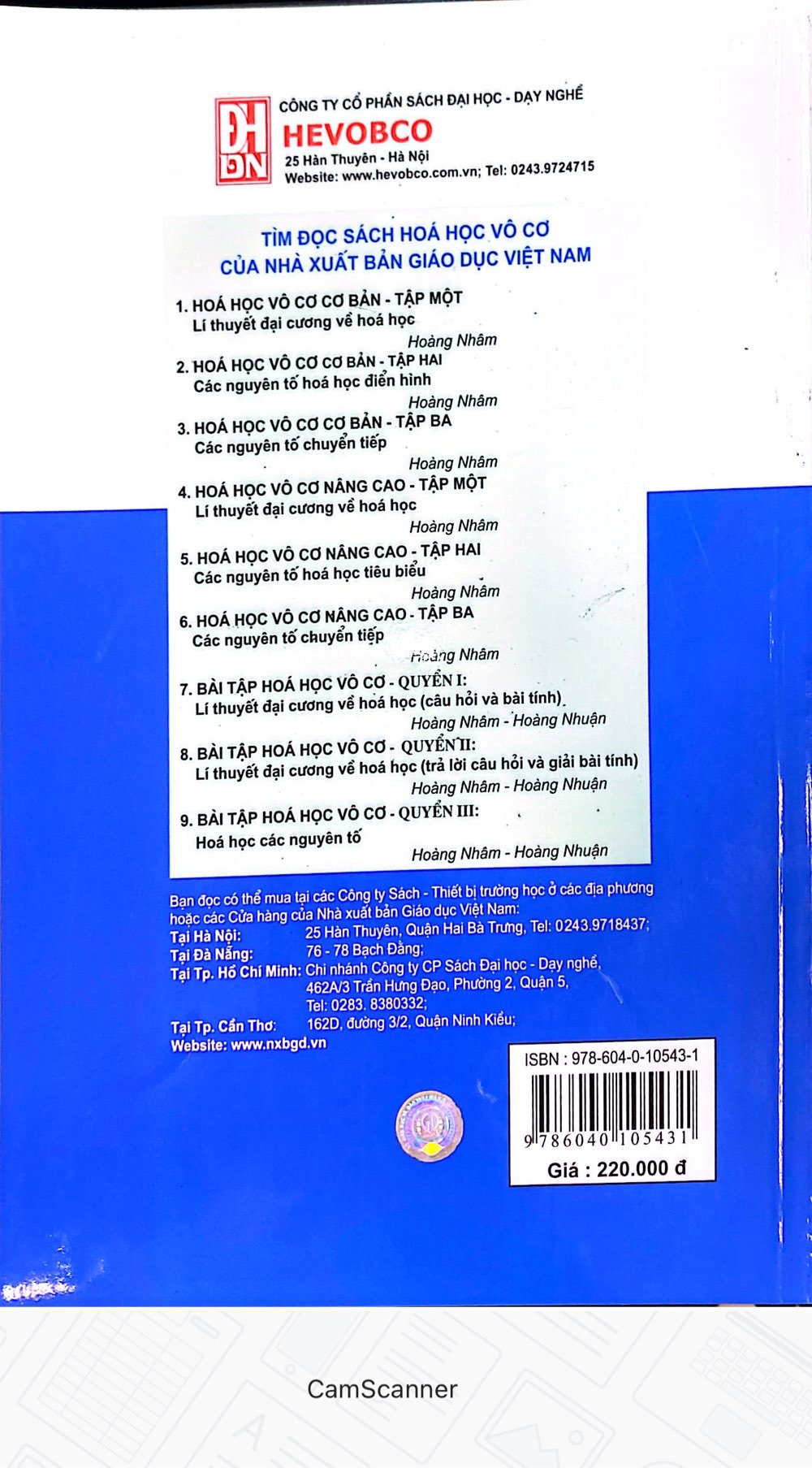 Sách - Combo 3 cuốn - Bài Tập Hóa Học Vô Cơ Gồm 3 cuốn : Bài Tập Hóa Học Vô Cơ THÔNG TIN CHI TIẾT Công ty phát hành : NXB Giáo Dục Tác