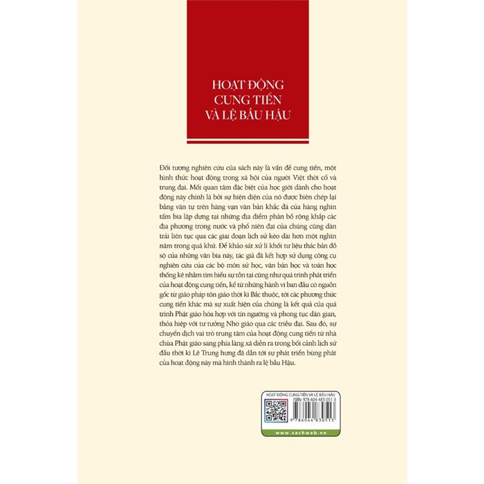 "Hoạt động cung tiến là một chủ đề rất lớn được ghi chép lại trong văn bia. Có thể khẳng định rằng văn khắc Hán Nôm chủ yếu là văn bia mang chủ để cung tiến, bởi thác bản của chủ đề văn bia này chiếm tới 88,33% trong tổng số thác bản văn khắc có trong kho sưu tầm của EFEO, cao hơn cả tỉ lệ người dân tộc Kinh trong tổng dân số cả nước. Đó là kết quả thống kê đối với bộ phận thác bản văn bia có niên đại trước thế kỉ XIX, và tỉ lệ này chắc chắn sẽ còn cao hơn nữa trong bộ phận thác bản văn bia triểu Nguyễn. Vì thế với khả năng hạn chế của cá nhân, cũng xin được giới hạn phạm vi nghiên cứu của chuyên luận này trong những niên đại từ thế kỉ XVIII trở về trước, khoảng thời gian được coi là đủ để quan sát hoạt động cung tiến cũng như sự hình thành và những diễn biến, phát triển quan trọng của lệ bầu Hậu.