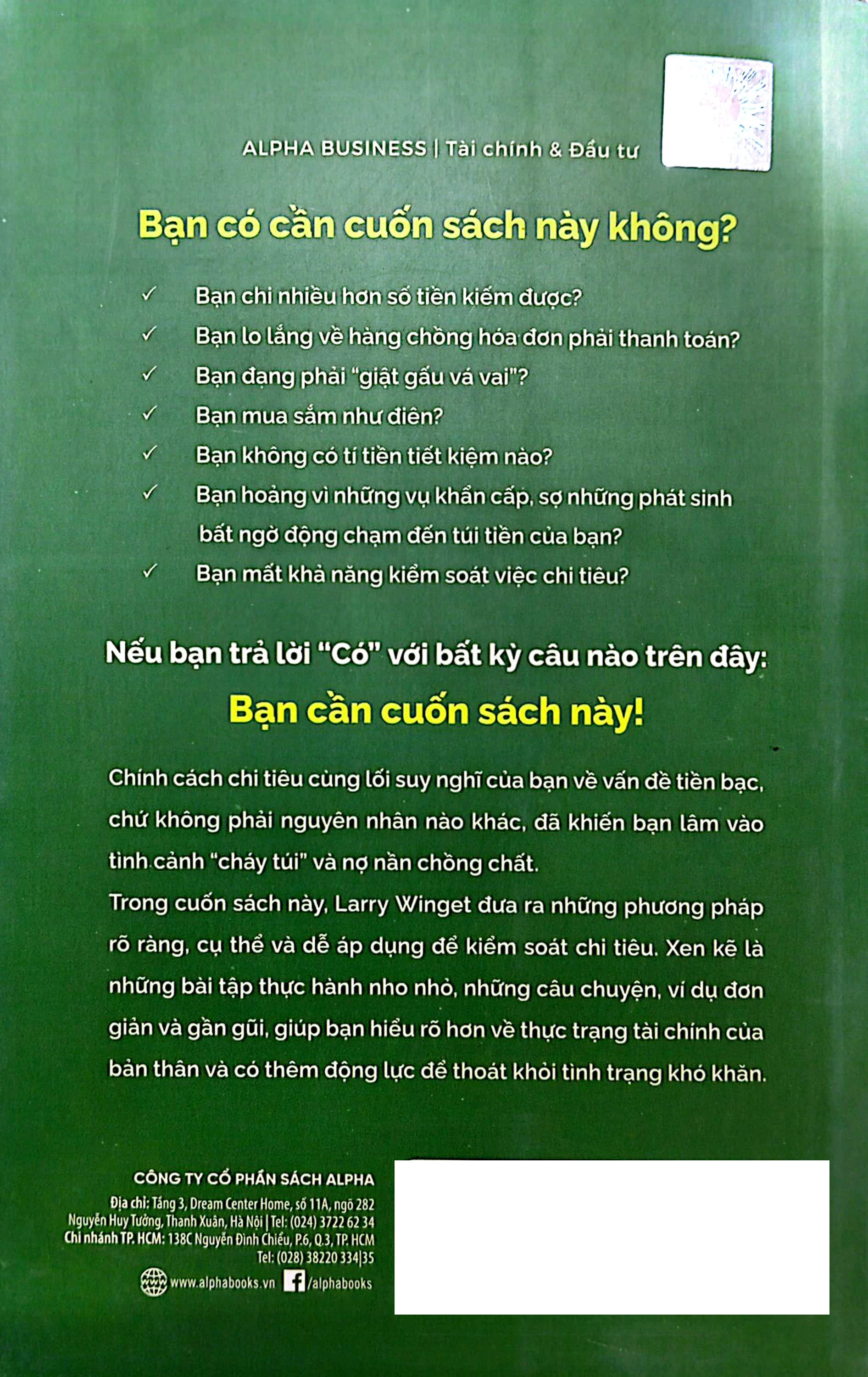 Trong cuốn sách này, Larry Winget đưa ra những phương pháp rõ ràng, cụ thể và dễ áp dụng để kiểm soát chi tiêu. Đó là những việc làm hết sức đơn giản nhưng mang lại hiệu quả bất ngờ, như bỏ truyền hình cáp, hạn chế đi ăn nhà hàng, dọn dẹp nhà cửa,… hay những việc làm mang tính dài hạn như lên kế hoạch chi tiêu hàng tháng, chuyển sang một căn hộ mới, dạy dỗ con cái về tài chính… Xen kẽ là những bài tập thực hành nho nhỏ, những câu chuyện, ví dụ đơn giản và gần gũi, giúp người đọc hiểu rõ hơn về thực trạng tài chính của bản thân và có thêm động lực để thoát khỏi tình trạng khó khăn.