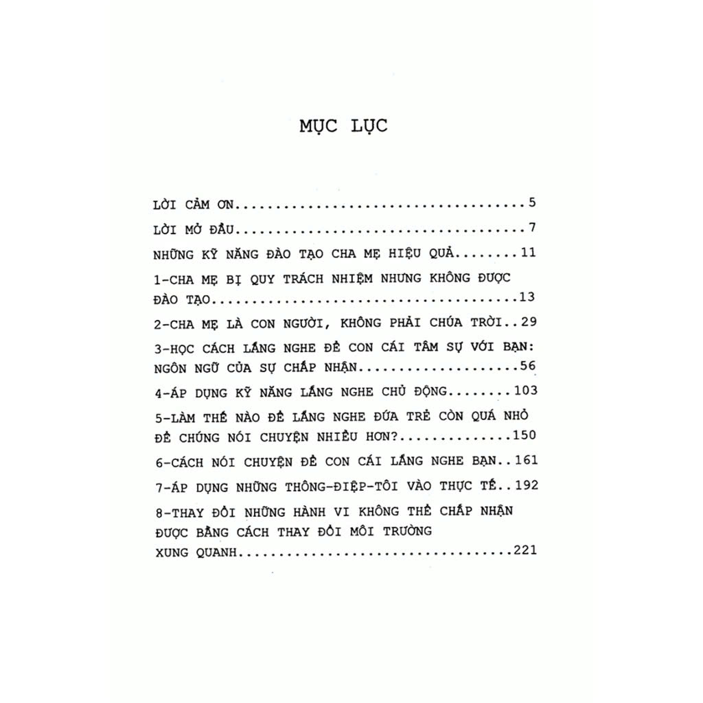 Gần gũi và kinh điển, Học làm cha mẹ hiệu quả là cuốn sách tiên phong dạy cha mẹ làm thế nào để giao tiếp hiệu quả hơn với con cái và cung cấp lời khuyên từng bước một giải quyết mâu thuẫn gia đình mà tất cả mọi người đều chiến thắng. Một cuốn sách bổ ích cho tất cả những người đang và sắp bước vào hành trình làm cha mẹ bởi nó sẽ chỉ cho bạn: