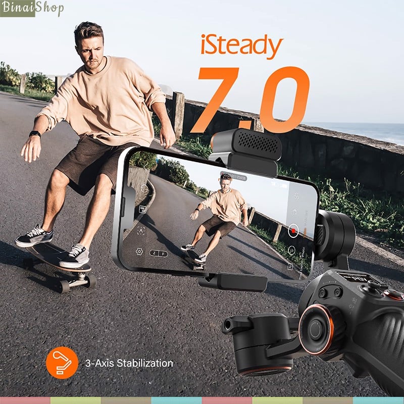 - Tích hợp các thuật toán ổn định iSteady 7.0 tiên tiến, mang lại khả năng ổn định hoàn hảo và tạo ra những thước phim cực kỳ mượt mà.