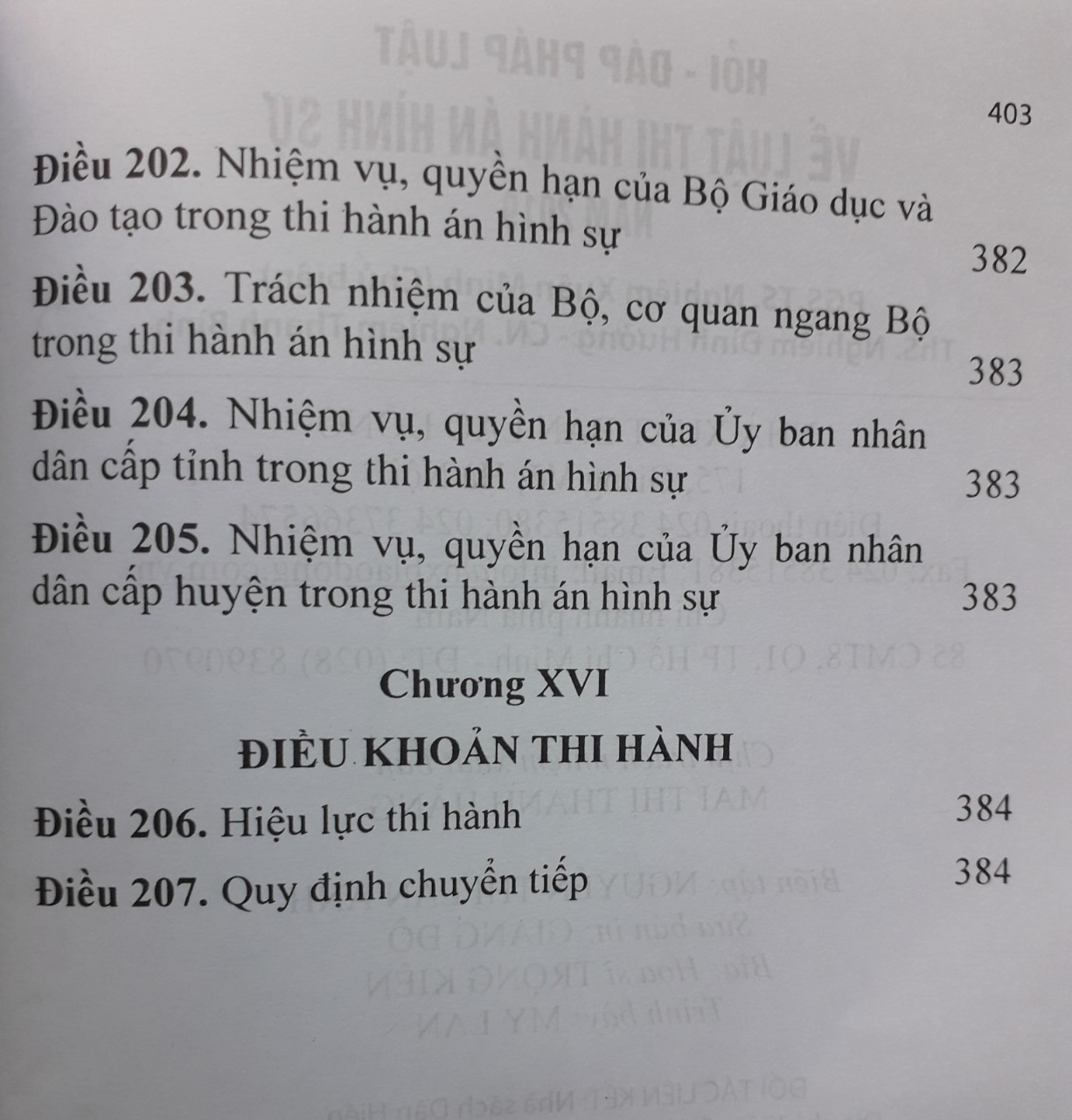 Hỏi - Đáp Pháp Luật Về Luật Thi Hành Án Hình Sự năm 2019 Tác giả: PGS.TS Nghiên Xuân Minh ( Chủ Biên ) Phó Trưởng khoa, Khoa CS Thi hành án hình sự và hỗ trợ tư pháp Nội dung cuốn sách gồm: Phần 1. Hỏi và đáp về luật thi hành án hình sự 2019 Phần 2. Văn bản pháp luật có liên quan Luật thi hành án hình sự Xin trân trọng giới thiệu cuốn sách đến bạn đọc!