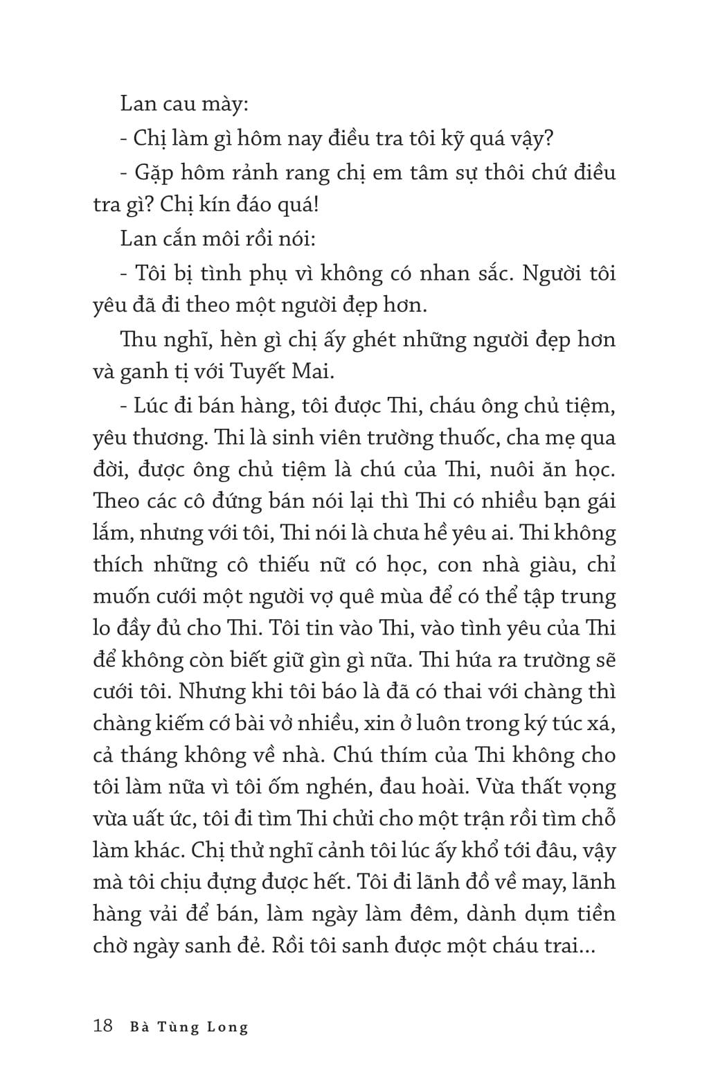 Bà Tùng Long tên thật là Lê Thị Bạch Vân. Nhà văn sinh năm 1915 này chuyên viết truyện tâm lý tình cảm với hàm ý giáo dục đạo đức trong gia đình, cổ vũ mọi người vươn lên, sống lý tưởng, thanh cao; Bà...