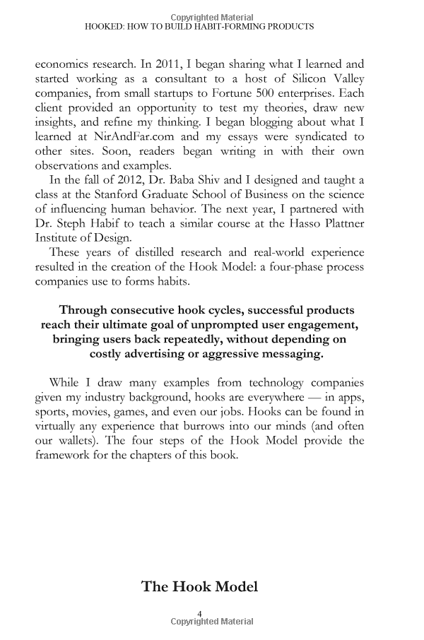 Nir Eyal spent years in the video gaming and advertising industries where he learned, applied, and at times rejected, techniques described in Hooked to motivate and influence users. He has taught courses on applied consumer psychology at the Stanford Graduate School of Business and the Hasso Plattner Institute of Design and is a frequent speaker at industry conferences and at Fortune 500 companies. His writing on technology, psychology, and business appears in the Harvard Business Review, The Atlantic, TechCrunch, and Psychology Today.