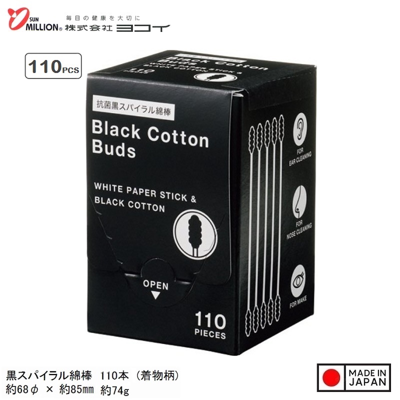 ✨Hộp 110 tăm bông kháng khuẩn than hoạt tính Sanritsu- Black - Hàng Nội Địa Nhật Bản