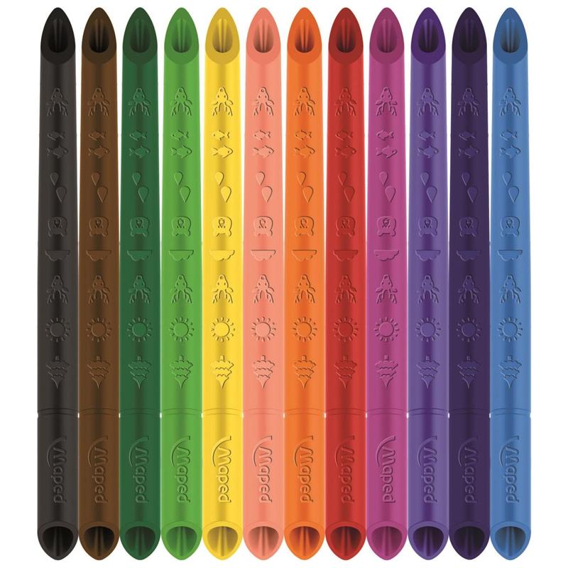 Thiết kế nguyên bản và đã được cấp bằng sáng chế cho phép trẻ tô màu trên cả hai mặt. Nhờ chất liệu 100% là chì, cây bút chì trông không giống cây bút chì nào có thể sử dụng được hết toàn bộ và không cần gọt giũa. Con bạn sẽ có thể vẽ và thể hiện trí tưởng tượng của m.ình không giới hạn với những cây bút chì này.