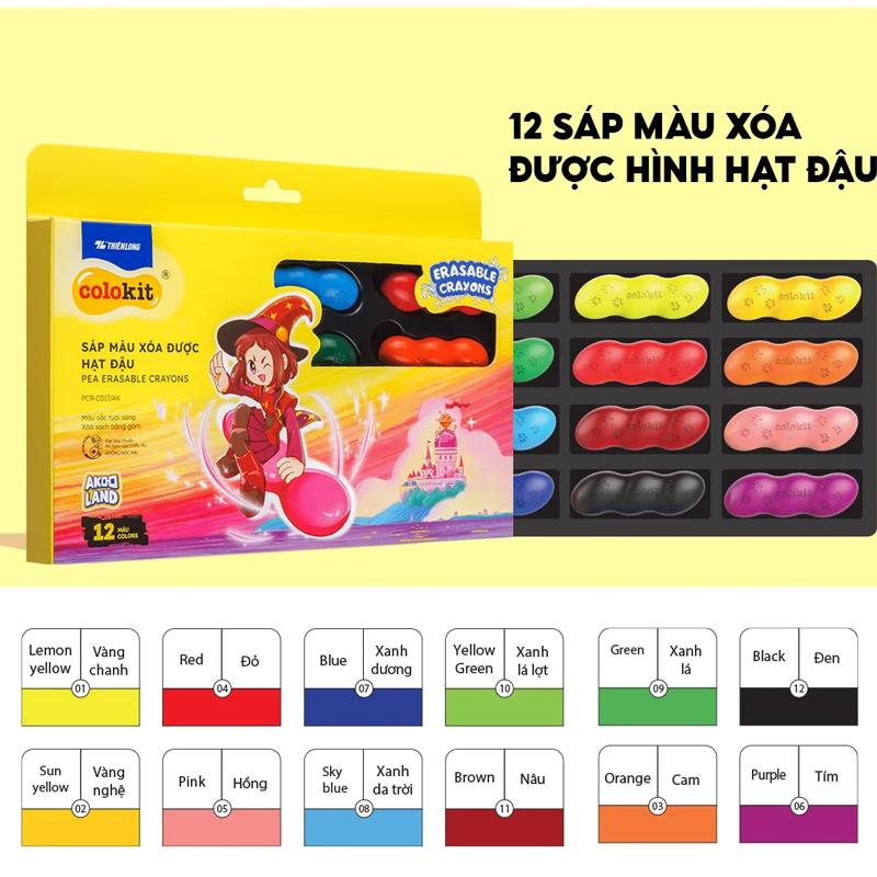 ✨Hộp 12 Sáp Màu Rửa Được Hạt Đậu Colorkit - Thiên Long PCR-C017/AK