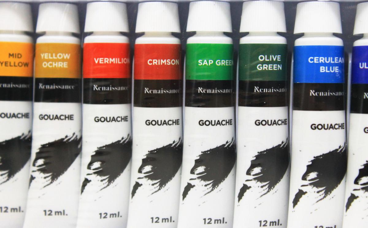 Hộp 12 Tuýp Màu Vẽ Gouache 12 Ml - Renaissance - Khác với màu nước tan và tạo sắc độ trong nước, màu gouache là màu dạng bột pha keo, có thể chồng nhiều lớp
