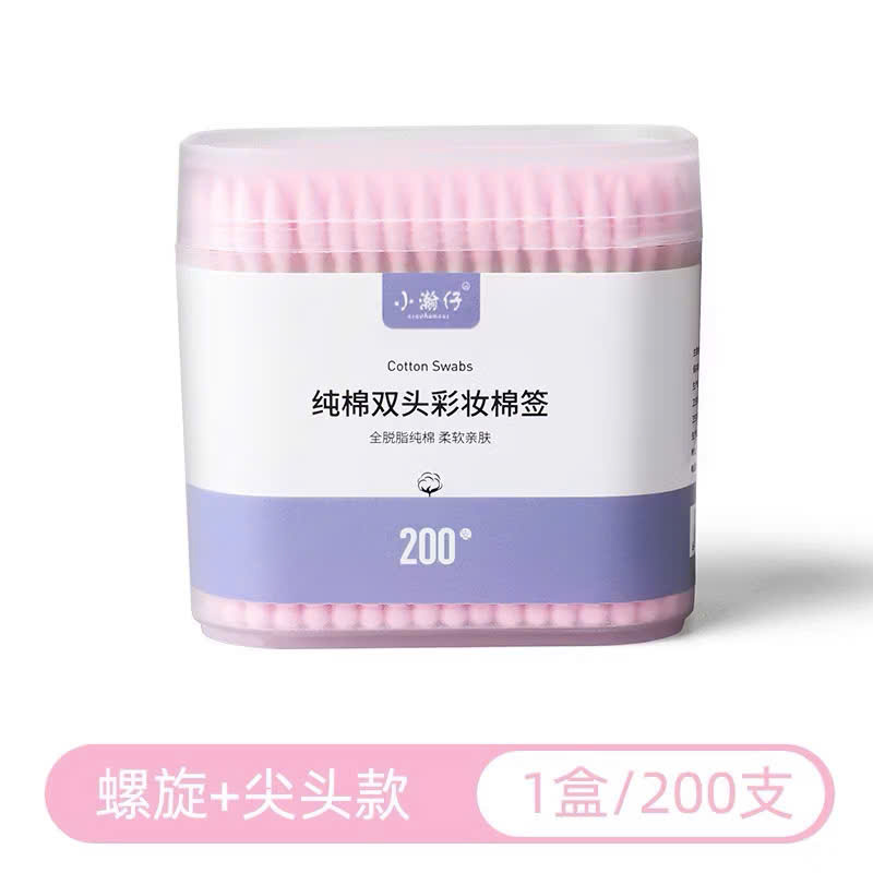 Hộp 200 tăm bông ngoáy tai 2 đầu kháng khuẩn - Đầu tròn xoắn ốc, dẹp