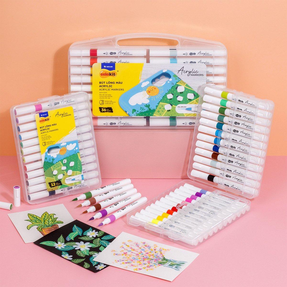Hộp 24 Bút Sơn Acrylic Mực Lỏng - Colokit ACM-C012 Bút lông màu Acrylic Markers 1 đầu 24 màu với thiết kế đầu BRUSH linh hoạt đáp ứng được đa dạng nhu cầu sử dụng.