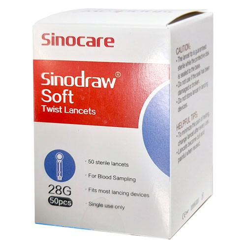 Kim chích đo đường huyết safe accu sinocare hộp 50 chiếc, vô trùng, đầu xoay vát 3 cạnh giảm đau và bớt sưng, dễ dàng sử dụng, giúp bạn tự lấy máu để thử đường