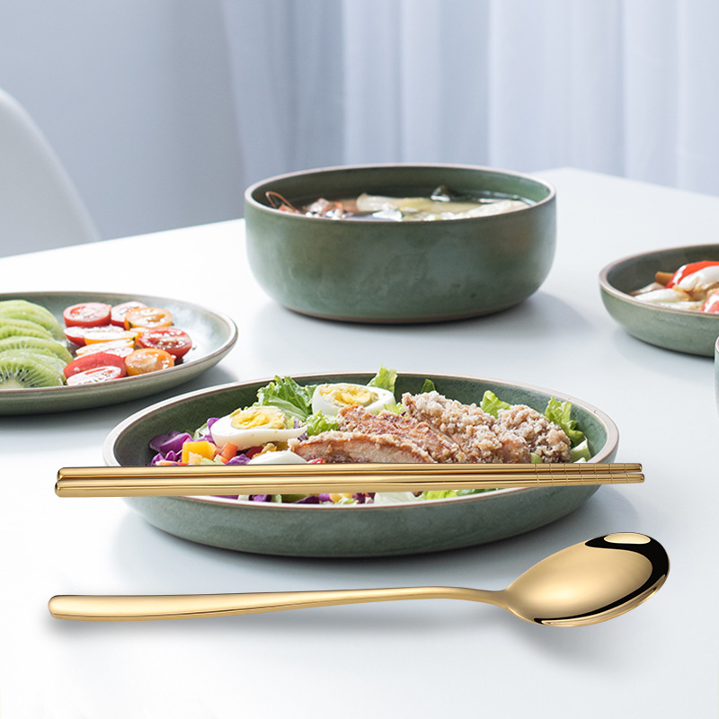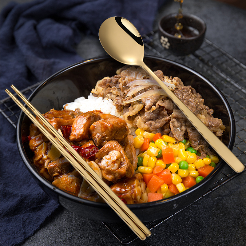 Kích thước: đũa 23.5cm, thìa 20.5cm.