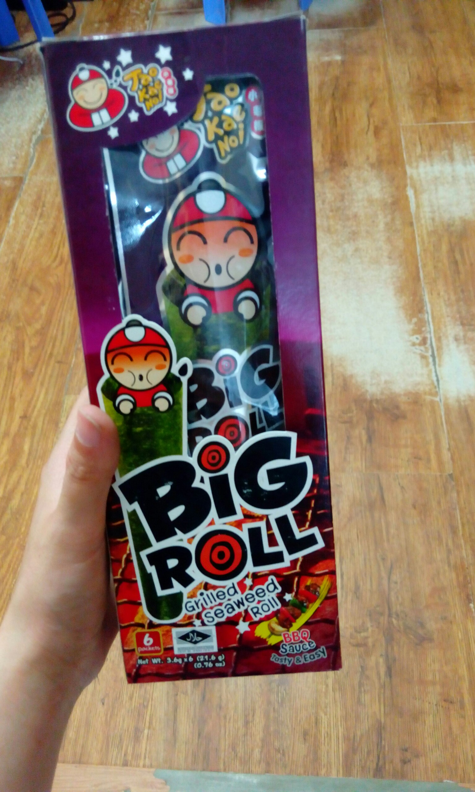 Rong biển cuộn tròn nướng Tao Kae Noi BIG ROLL giòn tan đậm vị, thơm ngon hấp dẫn với nguyên liệu rong biển, bánh rất giàu các chất dinh dưỡng và chất khoáng. Màu sắc