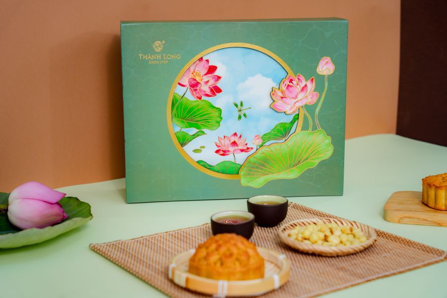 Mua tại TiktokHộp bánh trung thu 4 bánh chay 220g - Thành Long - Combo chay trăng/ chay 4 880g - Tặng 1 hộp trà