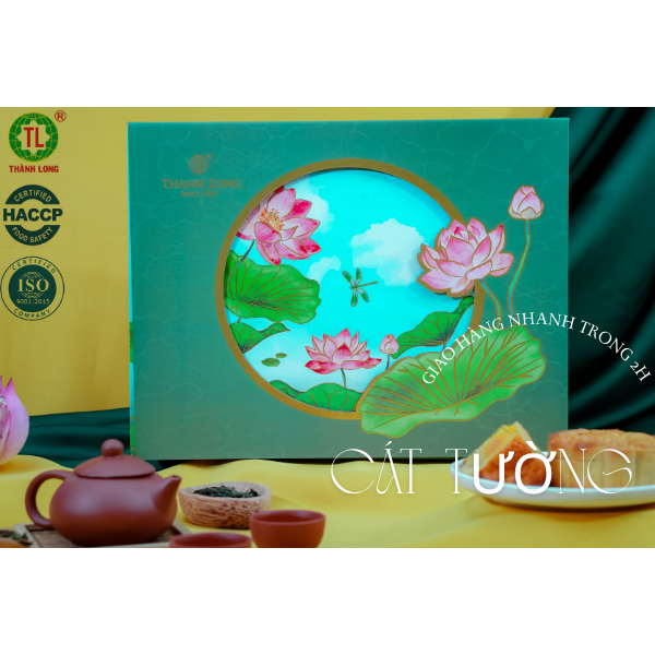 ✨Hộp bánh trung thu cao cấp 4 bánh 2 trứng 220g - Cát Tường - Thành Long 880g - tặng 1 hộp trà - Việt Nam