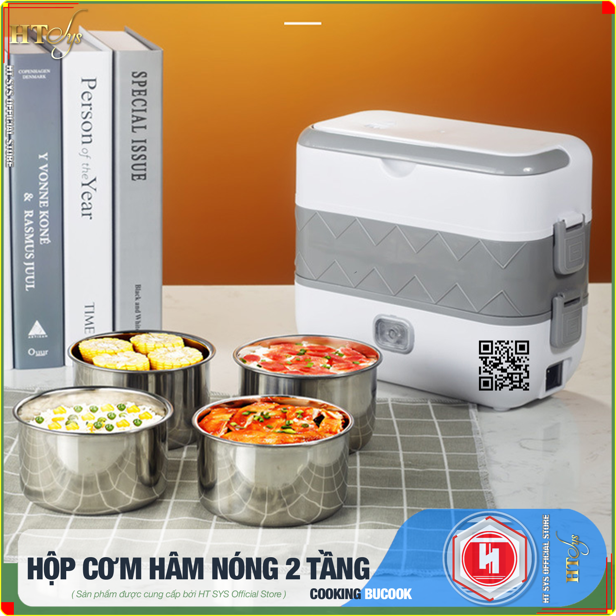Hộp cơm điện Lock&Lock -Hộp Cơm Điện HT SYS - BUCOOK DFHC02 - 2 Lít 2 Tầng 4 Ngăn Có Thể Nấu Và Hâm Nóng Thức Ăn, Ruột Bằng Inox 304 - Hàng Chính Hãng