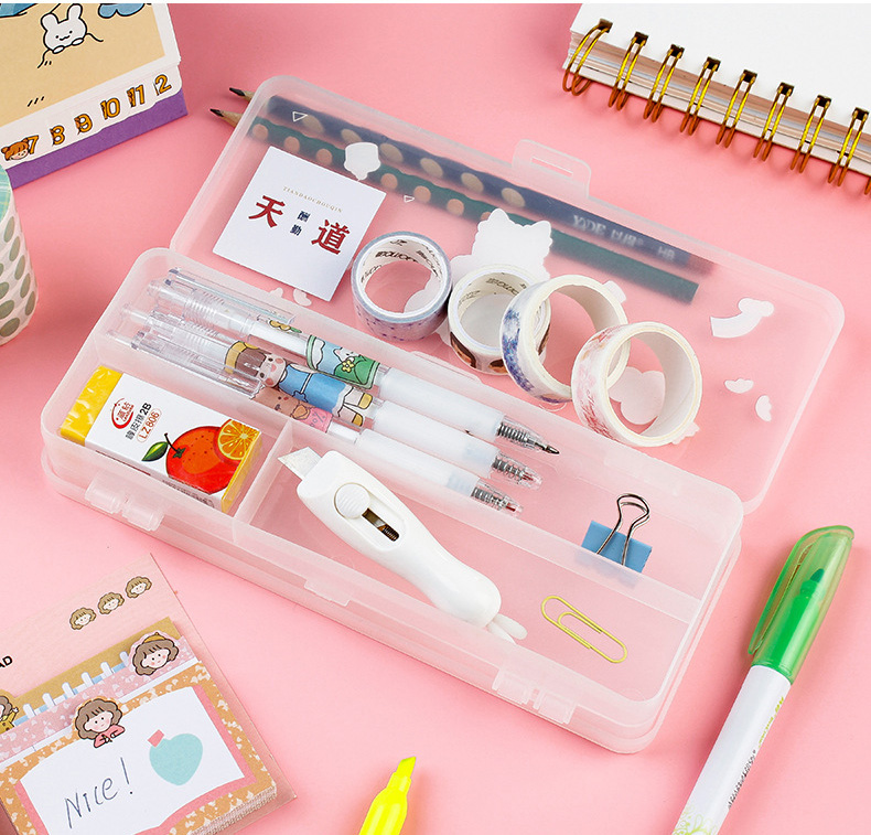 Hộp nhựa đụng bút 2 tầng sáng tạo Thiết kế tiện dụng Hộp bút nhựa 2 tầng thiết kế hình chữ nhật về 2 ngăn khác nhau, một ngăn chuyên dùng đựng bút, một ngăn