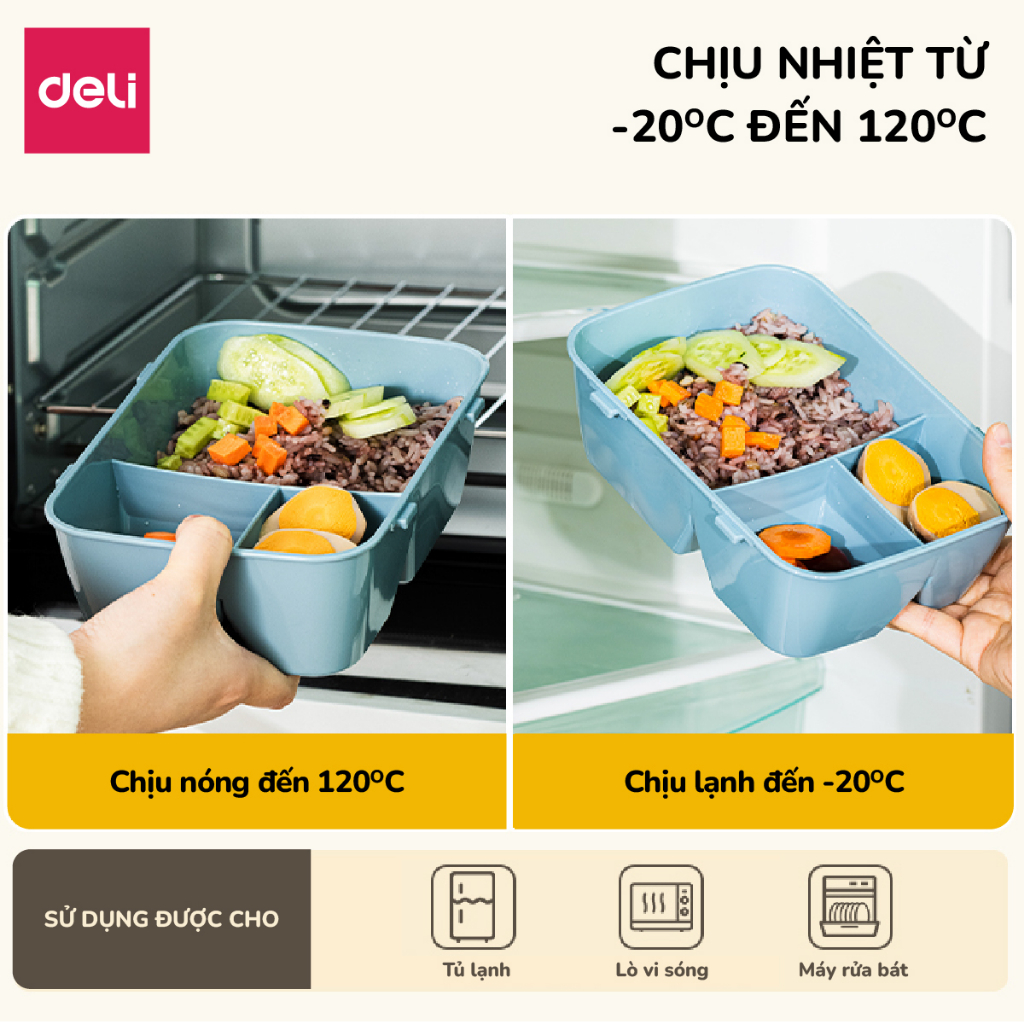 ĐẶC ĐIỂM NỔI BẬT - Hộp có dung tích 1000ml chia 3 ngăn, phân biệt từng món thuận tiện, thoải mái đựng cơm và thức ăn mang đi học, đi làm. - Làm bằng chất