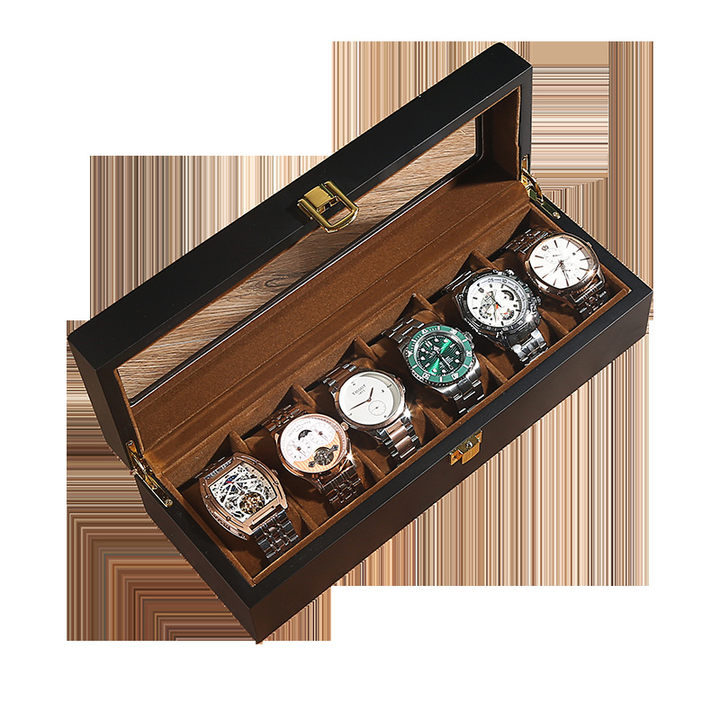 ✨Hộp Đựng Đồng Hồ 6 Chiếc SAIKE SAIKE S666 Gỗ Đen Lót Nhung Màu Nâu