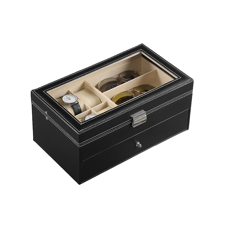 ✨Hộp Đựng Đồng Hồ Và Mắt Kính 2 Tầng SAIKE SAIKE S609 Vỏ Da Màu Đen