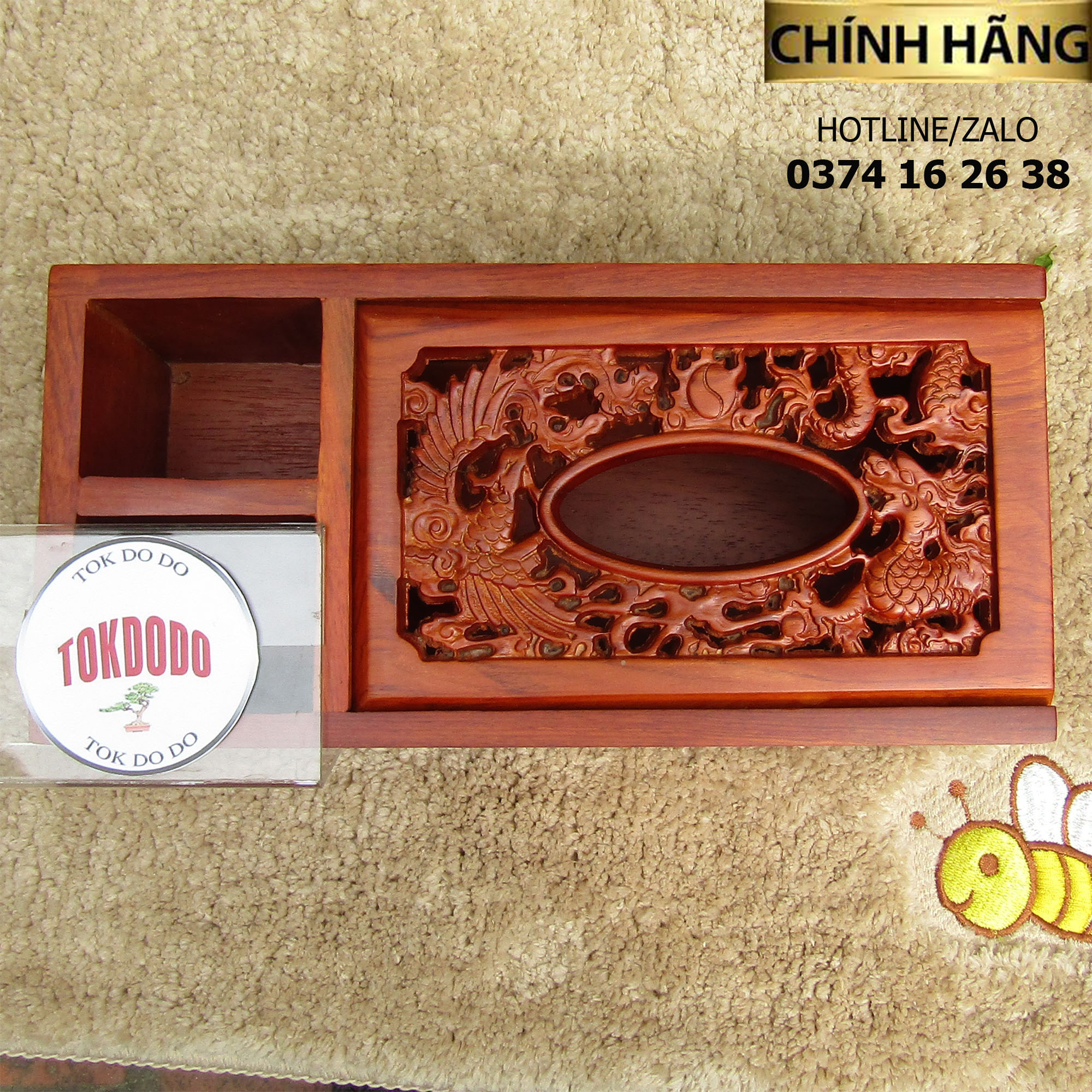 Hộp Đựng Giấy Ăn 3 Ngăn Gỗ Tự Nhiên TOKDODO Chạm Thành Siêu Đẹp Chất liệu gỗ tự nhiên quý hiếm, trạm khắc rồng phượng chầu cao cấp, tinh xảo Vật dụng hữu ích cho