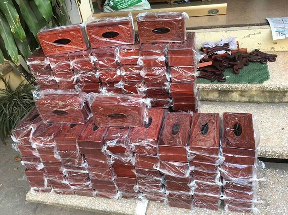 - Hộp đựng giấy ăn sản xuất từ gỗ hương tự nhiên được trạm khắc tinh xảo nhiều kiểu dáng, hoa văn tinh tế do các nghệ nhân của làng nghề truyền thống tạo ra.