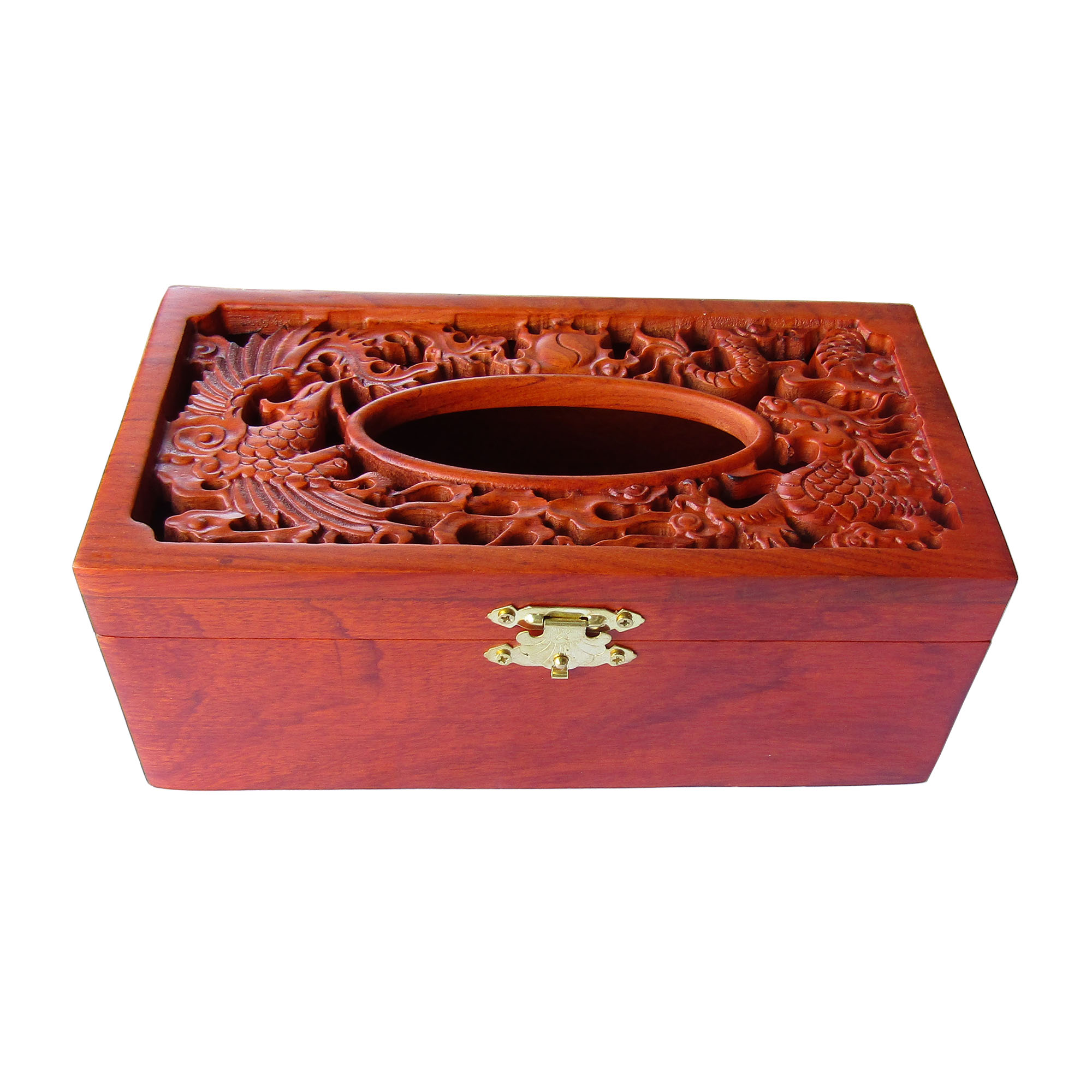 Hộp để giấy ăn Long phụng gỗ Hương # Quý Dậu Decor