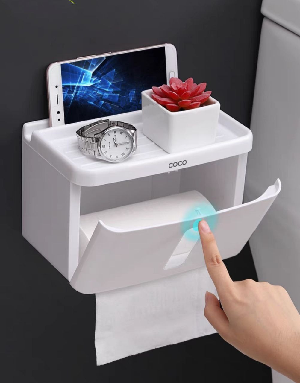 Hộp dễ dàng thay đổi vị trí và giúp cho giấy wc luôn khô ráo, ngăn nắp.