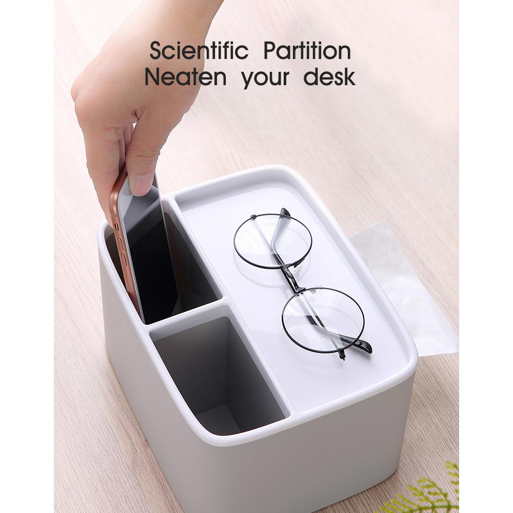 With three compartments and a removable top lid, this minimalist multipurpose tissue storage box is not only pretty but practical to use.