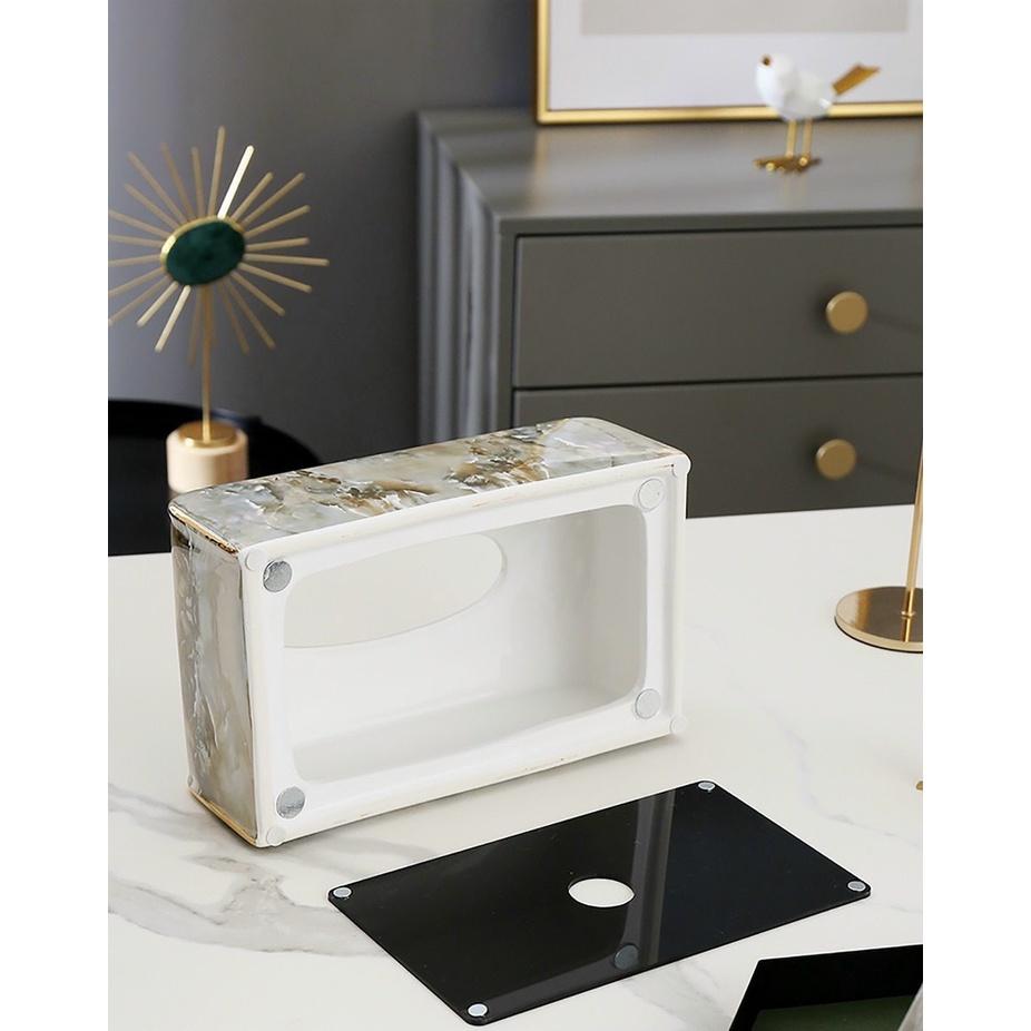Hộp khăn giấy sang trọng theo phong cách BẮC Âu Ngoài chức năng chính, sản phẩm còn là món đồ trang trí trên bàn ăn,phòng khách,phòng ngủ Thiết kế viền vàng tăng thêm độ sắc