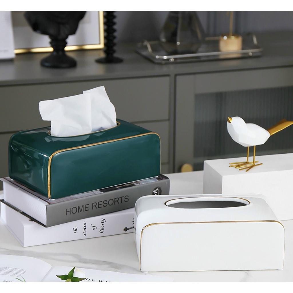 ✨HỘP ĐỰNG KHĂN GIẤY GIẤY ĂN BẰNG GỐM SỨ CÁO CẤP MÀU TRẮNG VIỀN VÀNG