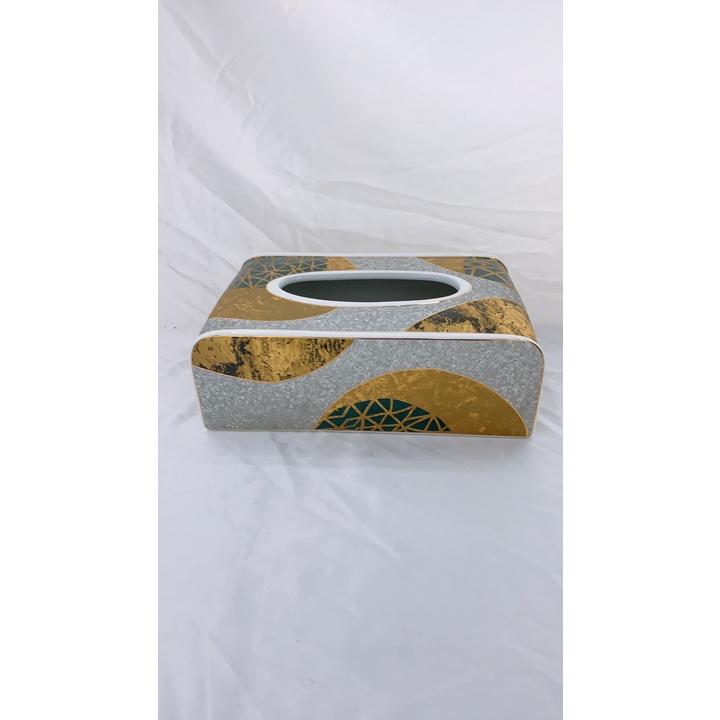 ✨HỘP ĐỰNG KHĂN GIẤY, GIẤY ĂN BẰNG GỐM SỨ CÁO CẤP PHONG CÁCH CHÂU ÂU MÀU VÀNG RẠN
