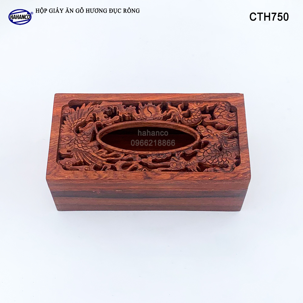 Hộp giấy ăn gỗ hương, đục khắc hoa văn tinh xảo, độc đáo, sang trọng.
