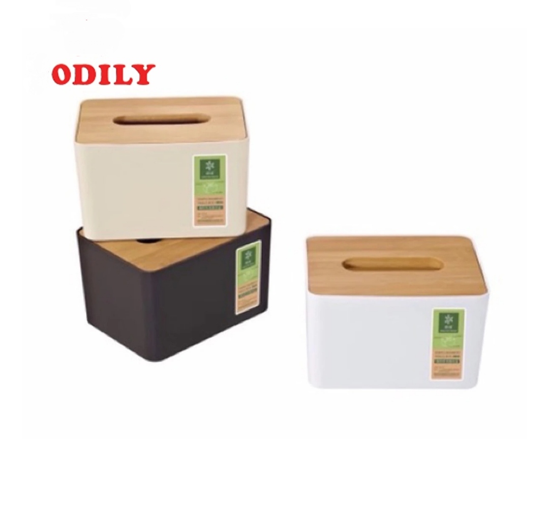 Hộp Giấy Ăn odily Thân Nhựa Mặt Tre Sang Trọng Đựng Giấy Tròn, Giấy Vuông, Giấy Chữ Nhật